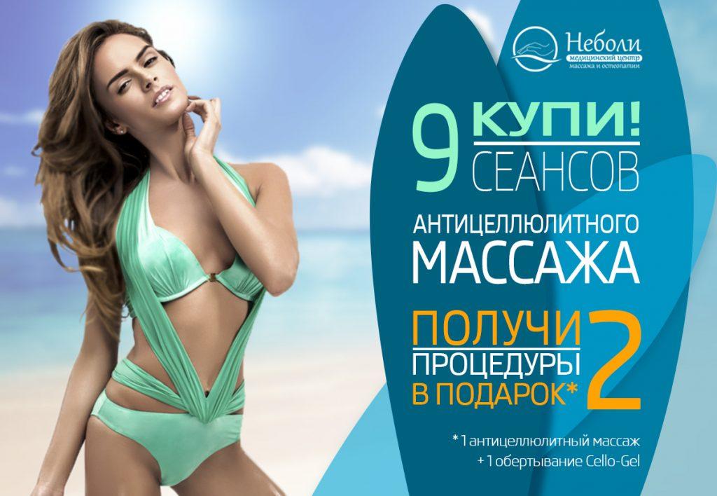 А с акцией от «Неболи» это еще и приятно! Ведь при покупке 9 сеансов антицеллюлитного массажа (90 минут), вы получаете в ПОДАРОК