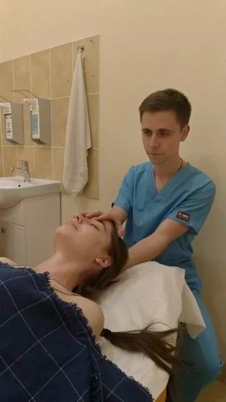 Далее идет краниосакральный массаж. Врач определяет проблемные места, убирает зажимы и напряжения.