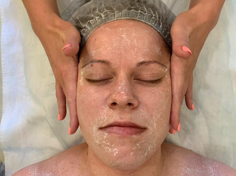 3. Массаж лица. Расслабляющий мышцы сеанс проводится по поверхности маски, чтобы улучшенный кровоток позволил быстрее транспортировать растительные экстракты и увеличить глубину воздействия. Также специалист применяет специальные техники, которые нормализуют состояние лицевых мышц, снимают напряжение и устраняют зажимы.