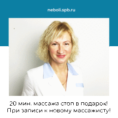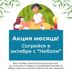 Подробнее«Неболи» поддерживает вас в этом и объявляет месяц скидок на лечебные массажи. Примите в подарок от нас скидку 15%....