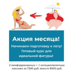 ПодробнееДней до лета все меньше! Поэтому и по многочисленным просьбам мы продлеваем нашу акцию на антицеллюлитный массаж до...