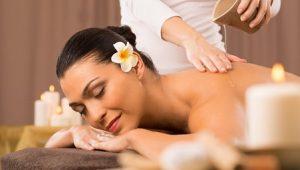 - Relaxed Woman Receiving A Back Massage At Health Spa